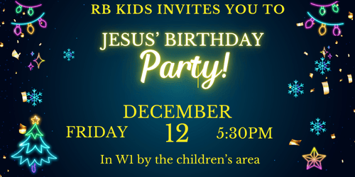 Join us Friday, December 12, 5:30 pm in W1 for Pizza, hot chocolate, games, and more! Invite your friends!