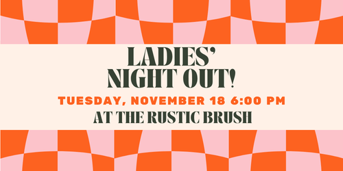 River Bend Women - You’re Invited to Ladies’ Night Out! Join us on Tuesday, November 18, at the Rustic Brush, 11605 S Fry, #102, Fulshear for a night of fellowship & fun! Invite a friend! Crafts include supplies and range from $35-55.